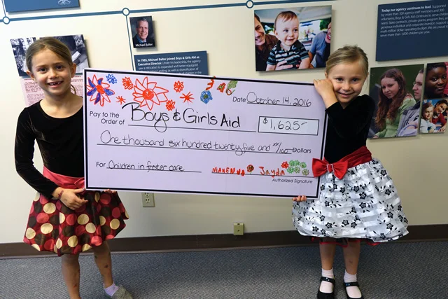 The 1st annual art show raised over $1,200. Jayda and Makenna presented their “big” check to Boys and Girls Aid on their adoption day. It was very special.